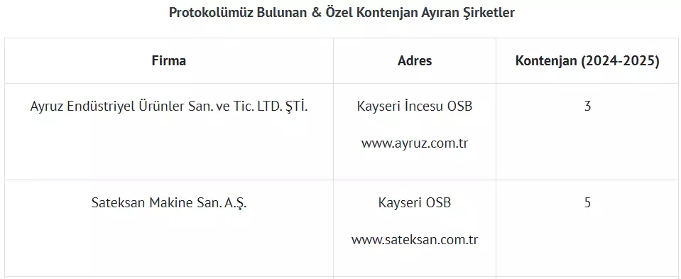 Bölüme Özel Kontenjan Ayıran İşletmeler