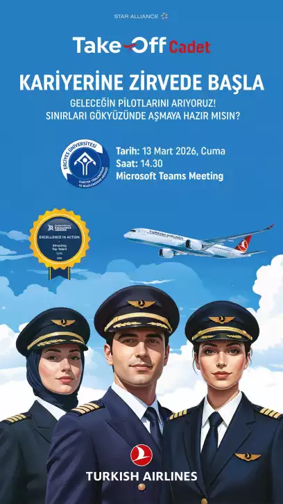 Etkinlik 13 Mart 2026 tarihinde saat 14.30’da çevrim içi olarak yapılacaktır. Program kapsamında Türk Hava Yolları’nın pilot yetiştirme programı hakkında detaylı bilgiler paylaşılacak, başvuru süreci ve kariyer fırsatları hakkında bilgilendirme yapılacaktır.