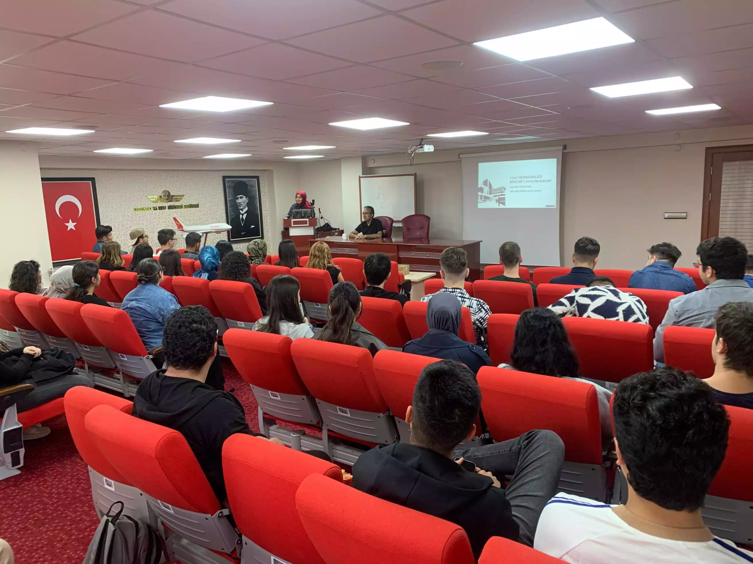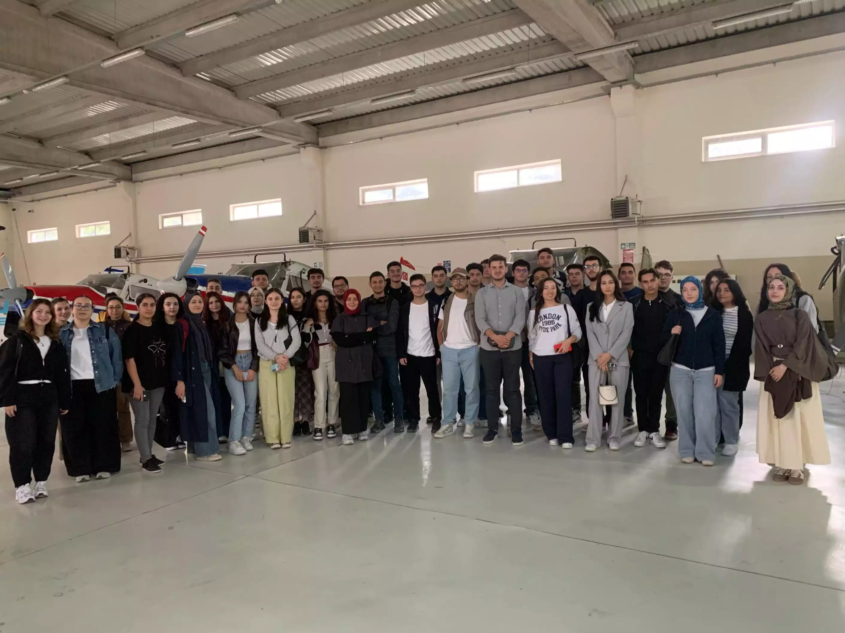 Sunumun ardından öğrenciler, fakülte hangarını ve diğer blokları gezerek uçakları, laboratuvarları ve çalışma alanlarını yakından görme fırsatı buldu. Hangar ve fakülte gezisi, Arş. Gör. Fatih Demir rehberliğinde gerçekleştirildi. Bu sayede öğrenciler hem bölümlerini daha yakından tanıdı hem de akademik ve sosyal hayata hızlı bir giriş yapmış oldu.